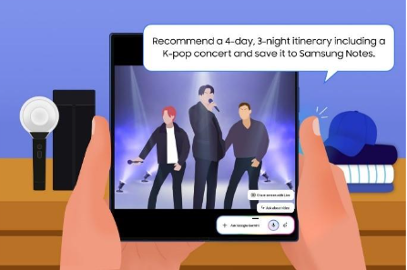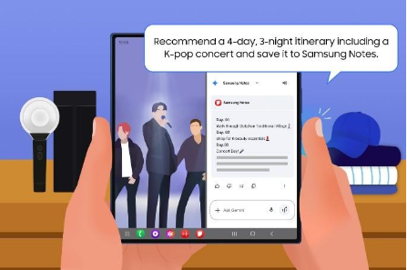 “Crea un itinerario de 3 noches y 4 días con el concierto y guárdalo en Samsung Notes.”